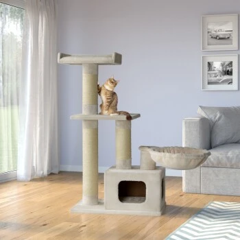 Der AniOne Kratzbaum Millie bietet Ihrer Katze dabei zahlreiche Möglichkeiten, diesem Bedürfnis ausgiebig nachzukommen. Die breiten und mit robustem Sisal umwickelten Kratzstämme animieren zum ausgiebigen Kratzen wodurch sich der Kratzbaum auch ideal für größere Katzen eignet. Verschiedene Aussichts- und Rückzugsmöglichkeiten sind durch die kuschelige Höhle, der gemütlichen Hängematte und dem bequemen Sofa ausreichend gegeben. So bietet der AniOne Kratzbaum Millie Ihrer Katze mit seinen drei verschiedenen Ebenen viel Abwechslung beim täglichen Entspannen und Beobachten.