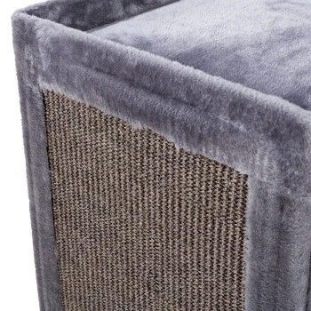 Die robust gefertigte Kratztonne von AniOne lässt sich durch ihr innovatives, dennoch schlichtem Design nahezu problemlos in jede Wohnumgebung integrieren und durch die eckige Form ideal und vor allem dadurch platzsparend in jede Zimmerecke platzieren. Die gesamte Kratztonne ist mit Natursisal umwickelt und animiert Ihre Katze dazu, ihren natürlichen Kratzisntsinkt zu befreideigen, was zugleich Ihre Möbel und Teppiche vor unschönen Kratzspuren schützt. Die beiden Höhlen laden Ihre Katze zum Spielen und ausgiebigen Verweilen ein. Die mit besonders weichem Plüsch-Stoff bezogenen Aussichtsplattform bietet Ihrer Katze einen besonder kuschilgen Platz um ihre Umgebung im Blick zu behalten.