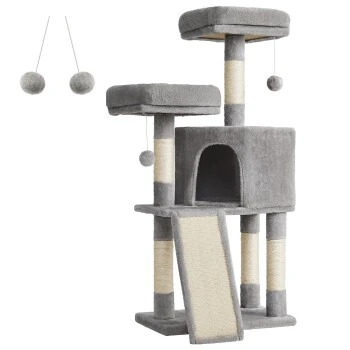 Für eine energiegeladene Katze? Kein Problem! Dieser Kratzbaum verfügt über ein verstärktes Fundament sowie einen Kippschutz, damit Ihr süßes Energiebündel darauf wild herumspringen kann