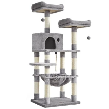 Materialien zum Schnurren: Dicker Plüsch, kratzfester Sisal, robuste Holzspanplatte – Die Materialien dieses Katzenbaumes überzeugen selbst die Stubentiger