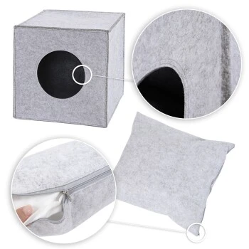 - MAßE: Mit 33x37x33 cm ist dieser Kuschelwürfel überall aufstellbar und durch seine Faltbarkeit sehr platzsparend. Du erhältst die Höhle in den Farben hellgrau oder dunkelgrau, wahlweise mit oder ohne Liegekissen.