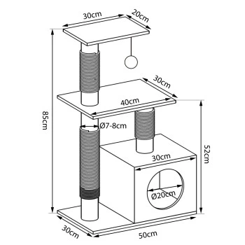 - MAßE UND FARBEN. Der langlebige Kletterbaum misst 50x30x85 cm und ist in den Farben Beige, Braun, Hellgrau und Dunkelgrau erhältlich