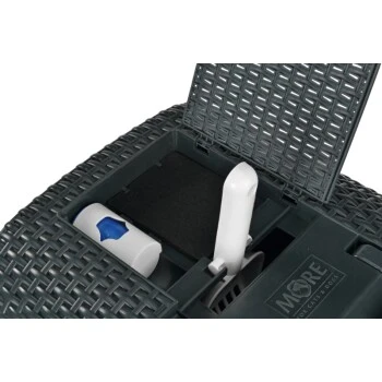 Die Katzentoilette Elegance verfügt zusätzlich über einen Tragegriff sowie ein Zubehörfach, in welches Streuschaufel, Beutel und Filter verstaut werden können. Der integrierte Aktivkohlefilter reduziert unangenehme Gerüche.