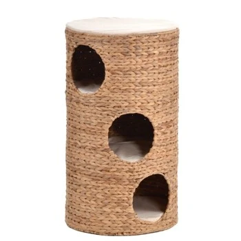 Kletterspaß und Rückzugsmöglickeit bieten Sie Ihrem Liebling mit dieser Katzentonne. Das weiche Geflecht aus Wasserhyazinte fügt sich harmonisch in jedes Wohnambiente ein. Für besondere Gemütlichkeit sorgen die vier weichen Kissen, die sich jeweils in den drei Höhlen und auf dem Dach befinden (herausnehm- und waschbar).