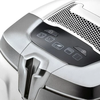 Der praktische und kompakte Schlittensauger mit Beutel und einem Fassungsvermögen von 3,5 Litern läuft mit 72 dB angenehm leise und verfügt über elektronische Saugkraftregulierung.