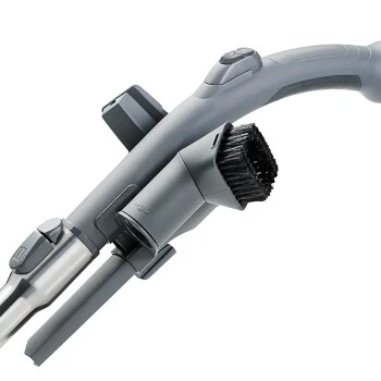 Im Lieferumfang enthalten: Umschaltbare Bodendüse mit Fußklick, Polsterdüse, Fugendüse, Möbelpinsel mit Drehgelenk, praktischer Vario-Clip für das Mitführen von Zubehör am Gerät, 3,5-Liter-Staubbeutel.