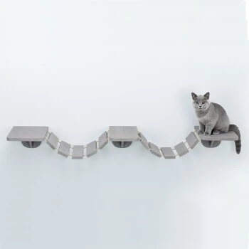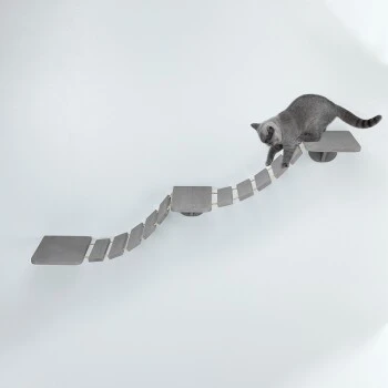 Die Kletterleiter für Katzen kann abwechslungsreich mit anderen Elementen zu Kletterwänden und -pfaden kombiniert werden. Darüber hinaus genießt Ihre Samtpfote eine tolle Aussicht: auf 3 Plattformen und zwei beweglichen Brückenelementen kann sie ihr „Reich“ beobachten oder sich dort entspannen. Aufgrund der Tatsache, dass die Kletterleiter an der Wand fixiert wird, ist sie platzsparend und kann zusätzlich als Verbindung zu anderen Kratzartikeln wie Kratzbäumen oder Säulen genutzt werden.